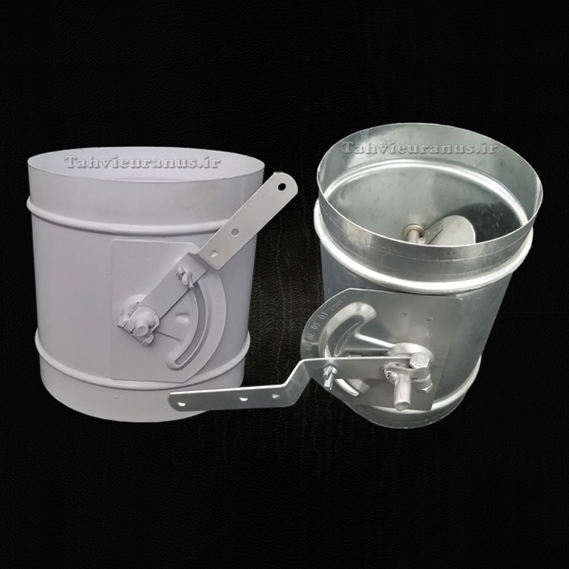 دمپر بین کانالی گرد تنظیم دستی قطر 20 به فلکه یا صفحه ای گفته می شود که جریان هوای ورودی را متوقف یا تنظیم می کند.